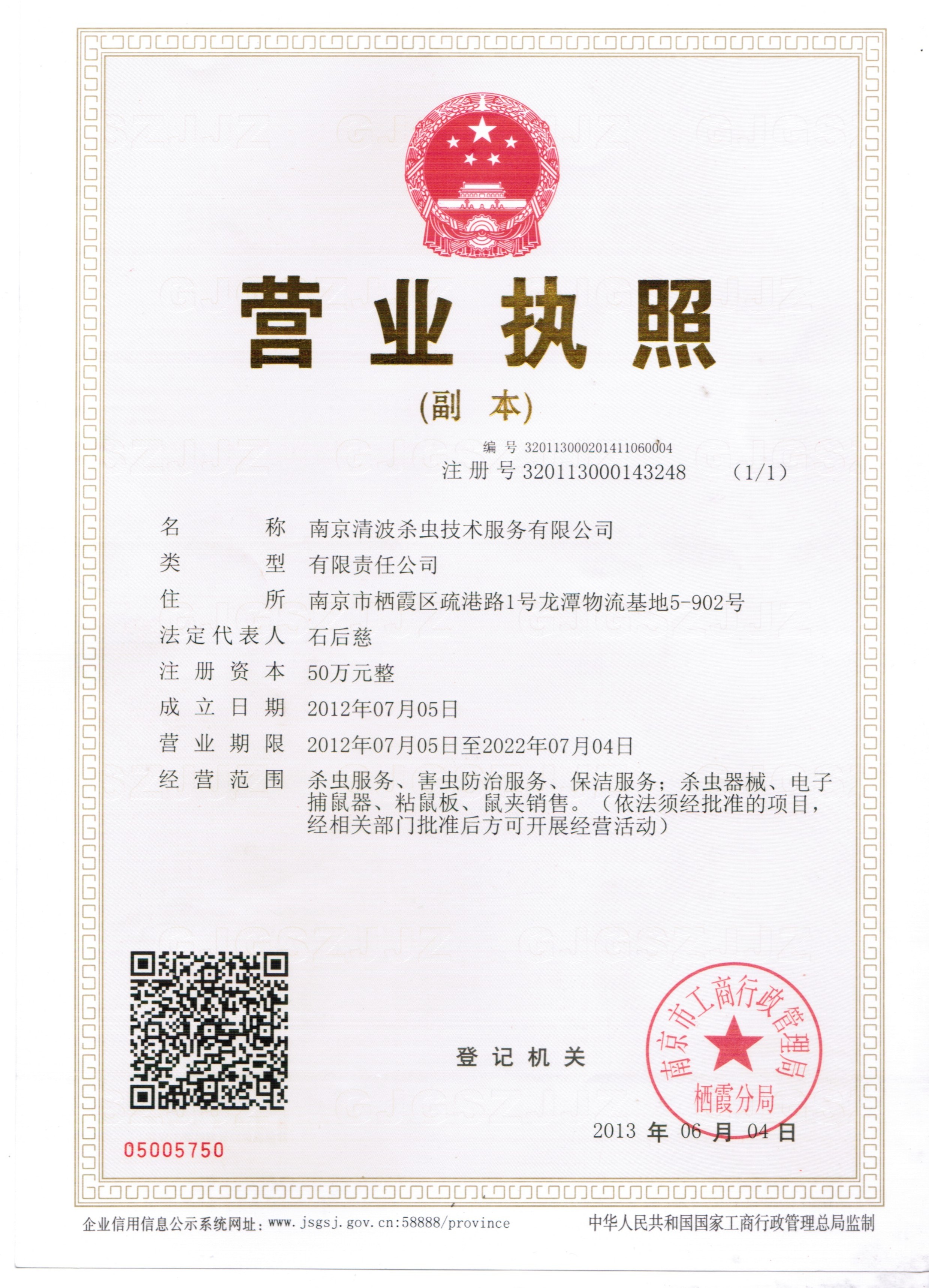 熱烈祝賀清波滅鼠公司榮獲中國有害生物防制A級資質